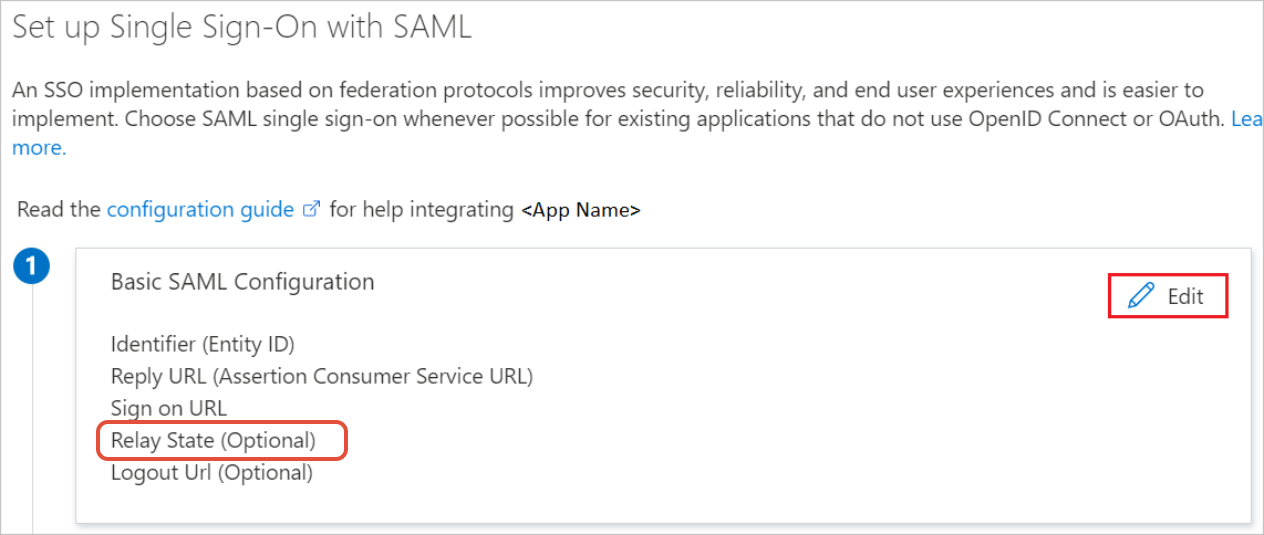 - On the Set up single sign-on with SAML page, next to Basic SAML Configuration, select Edit (pen icon).