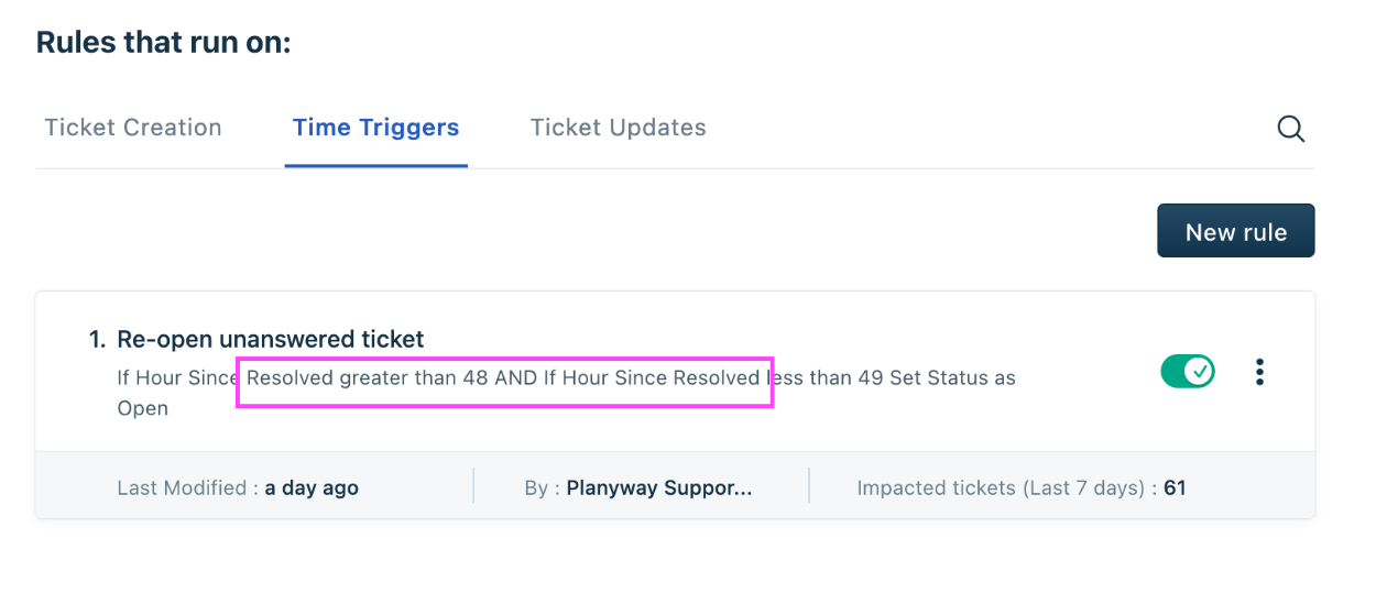 At times, customers would report that the Time trigger automation rule was executed on incorrect tickets. For such cases, get the below details from the customer: