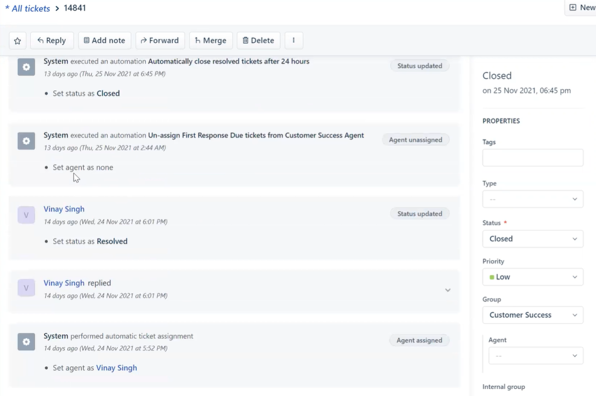 In the screenshot below, you will see that the ticket is in the closed status but the rule has been executed: