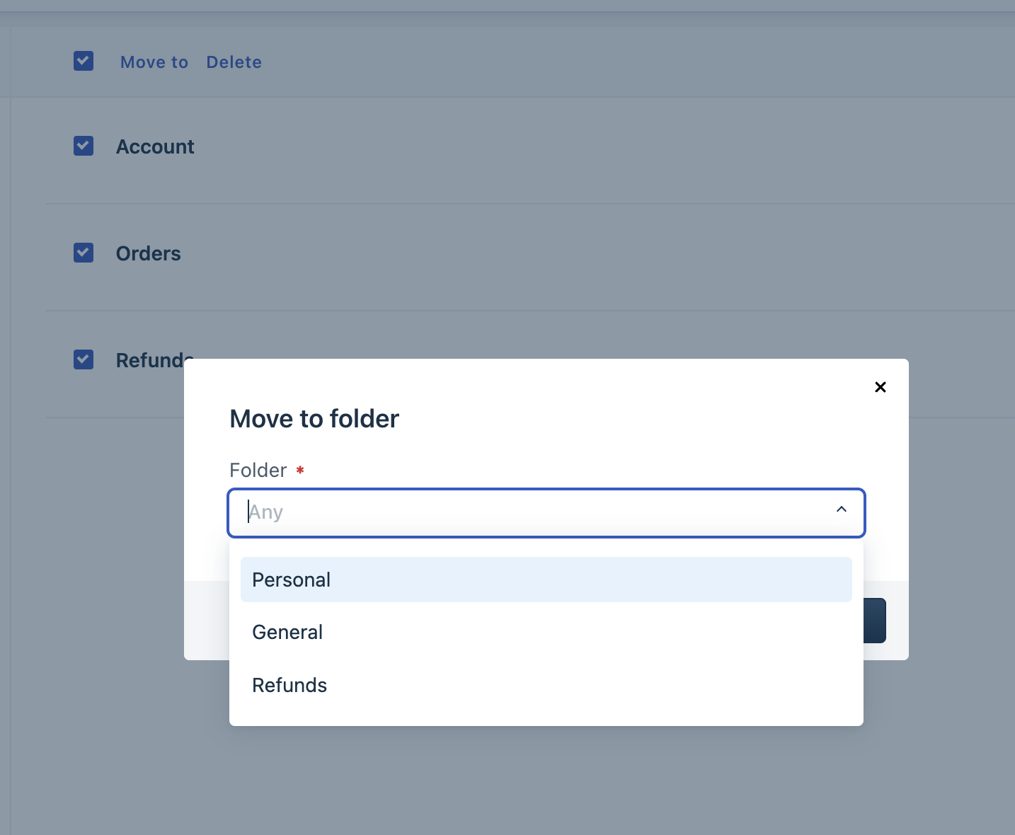 You can organize your canned responses into folders to easily categorize and move them to other folders.