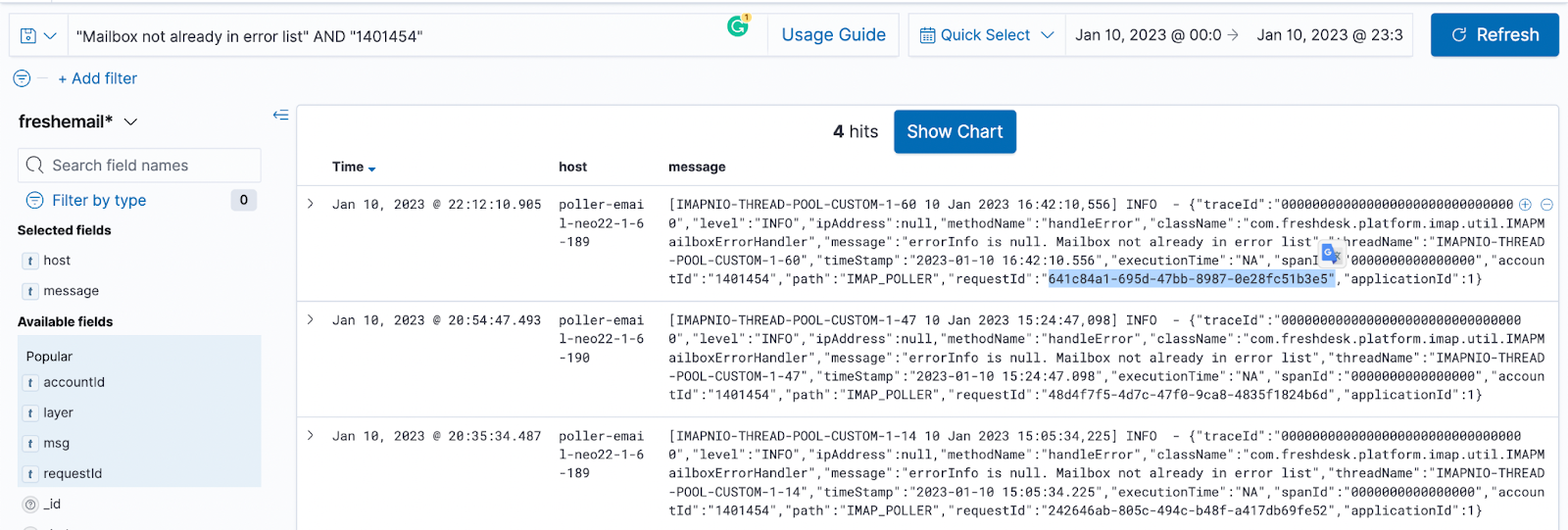 The Parameters needed to check the logs:- Account ID & Timestamp