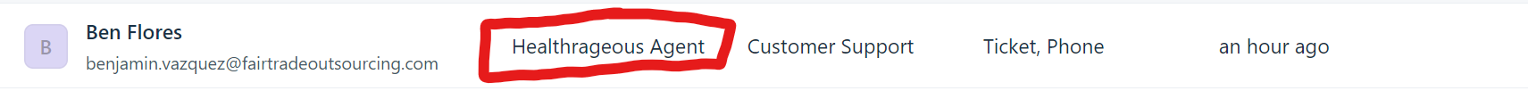 The Healthrageous Agent role is the same role that has been assigned to other agents as well, but for these agents alone, it is shown as supervisor.