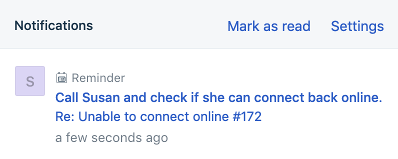 When you're working on a ticket, you can easily add todos from the right sidebar. If you'd like to call Sadie at 9 pm tomorrow to follow up and check if things are fine, you can create a todo and set a reminder against it. Once you add a todo, you can click 'Set reminder' to mark a date and time against it.