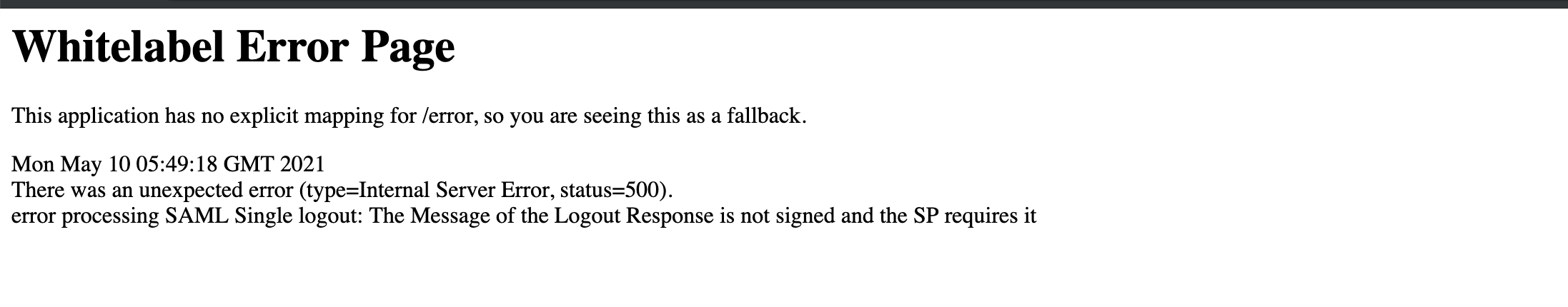- Whitelabel Error Page(In SP initiated Single logout: The Message of the Logout Response is not signed and the SP requires it)