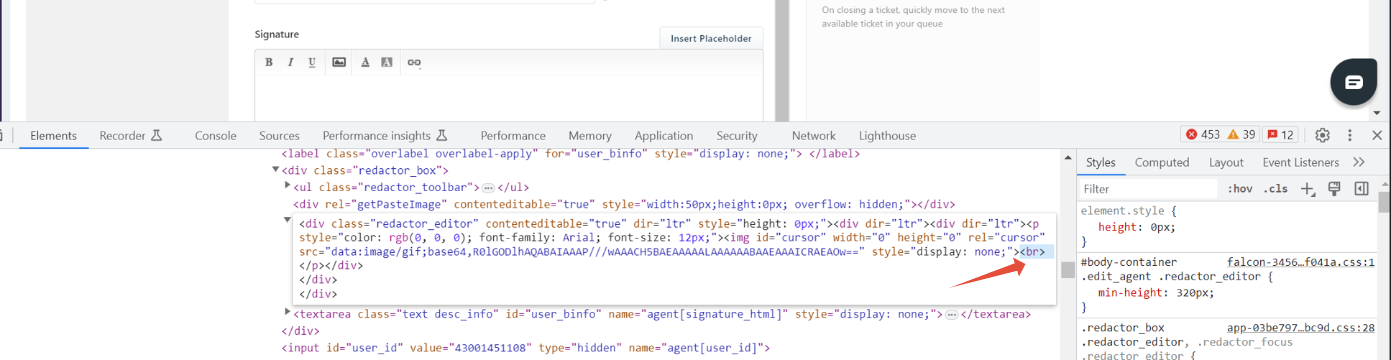 1. Suggest the customer make use of the agent reply template or the signature management apps as they would have a dedicated section to add the HTML code.