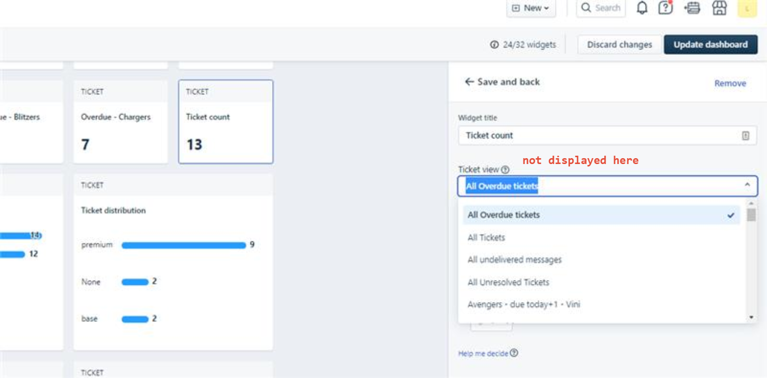 a) If the custom view has "Just me" as the visibility, we would not be able to map it to the widget. The visibility should either be "All agents" or "Agents in groups" for it to be mapped to the widget.
