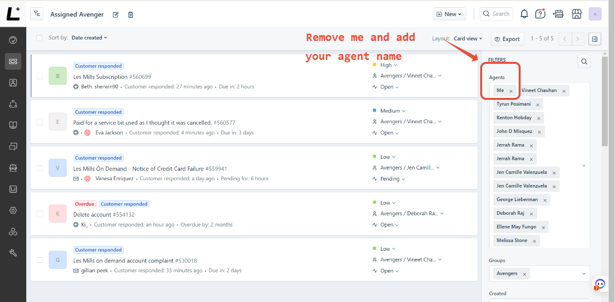b) If the filter conditions in the custom view have "Me" under the Agents drop-down field, then the view name will not be visible in the dashboard.