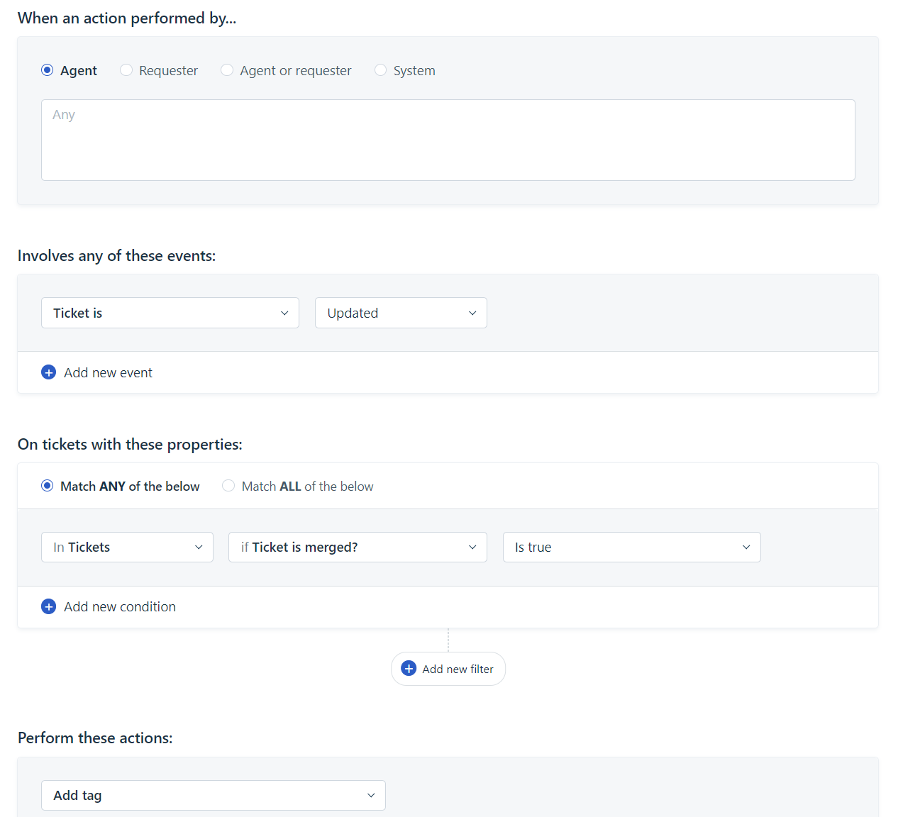To achieve this, create a new automation rule under Admin > Workflows > Automations > Ticket updates > New Rule