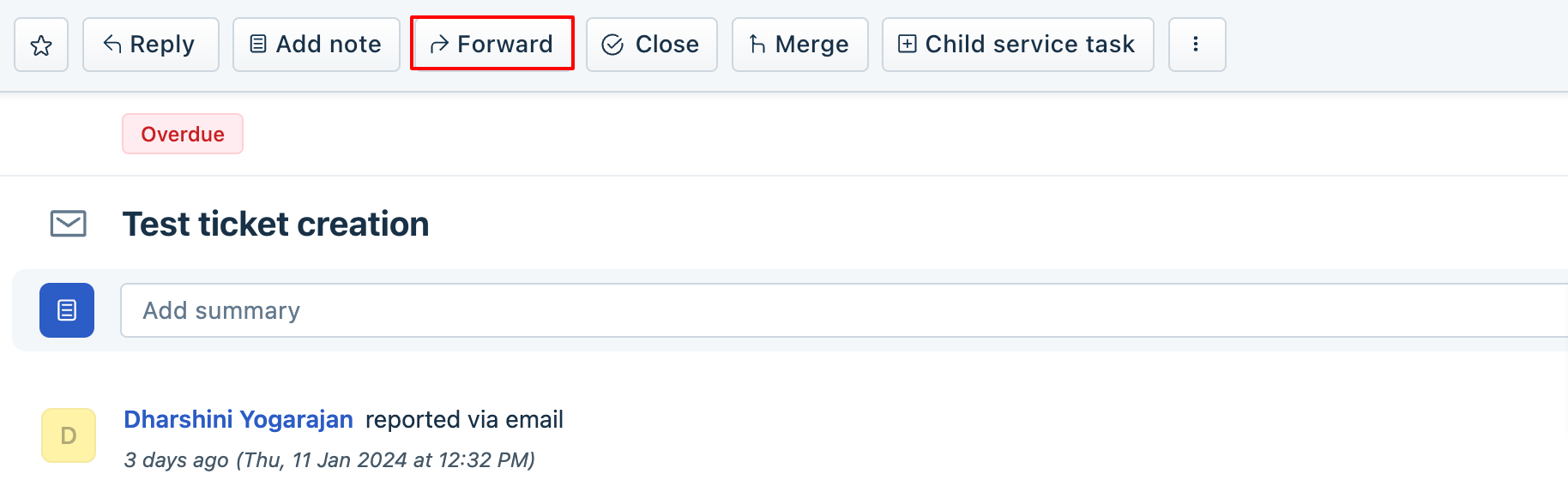 - Forward button available at the top of the ticket