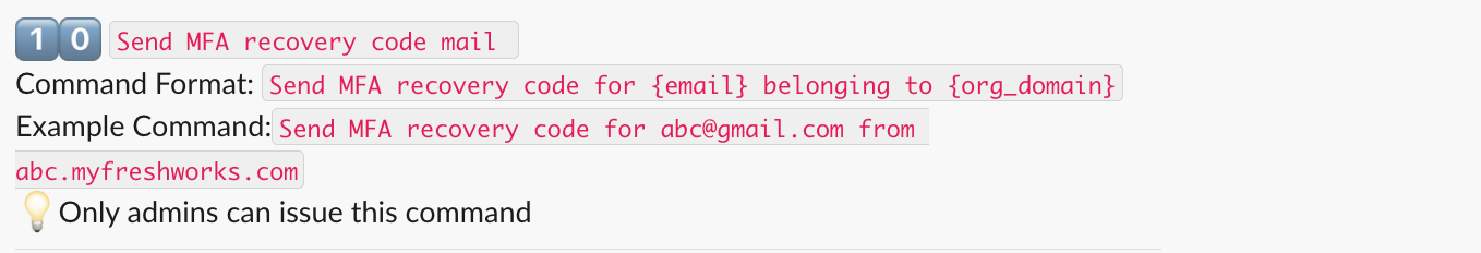- If they do not have the recovery codes handy, the agent can request recovery codes from the Organization Admin. The Organization Admin can send recovery codes to the user.