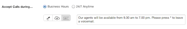 - You can choose whether to want to accept calls only during business hours or the whole 24 hours.