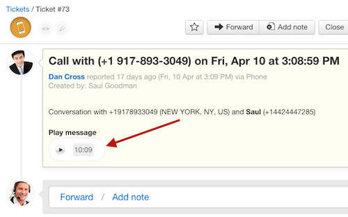 - When you convert recordings incoming and outgoing calls, that are visible to customers and agents, into tickets, the ticket description will have the recording.