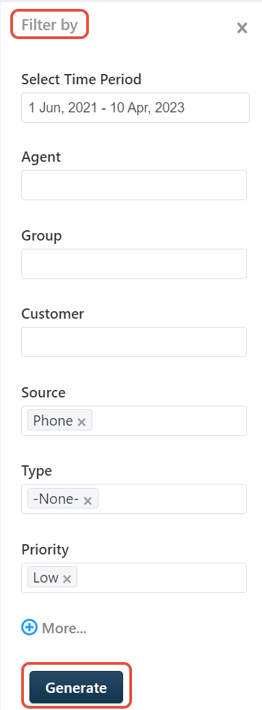 The 'Helpdesk In-depth' report can be filtered based on all the ticket properties including Agent, Group, and Customer. Using filters, you can see how efficient your agents and groups are.