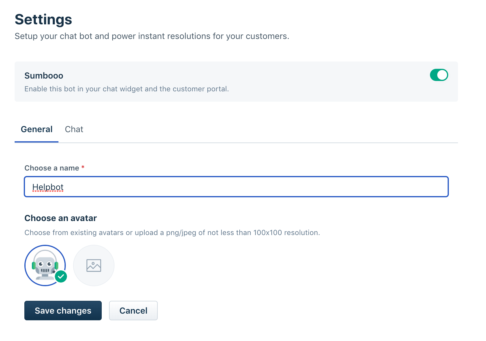 - Under General Settings, you will see an option to choose a name and an avatar for your Answer Bot