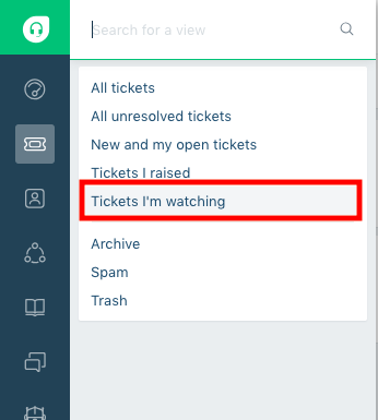 Go to Tickets and choose the list view Tickets I'm watching as show below: